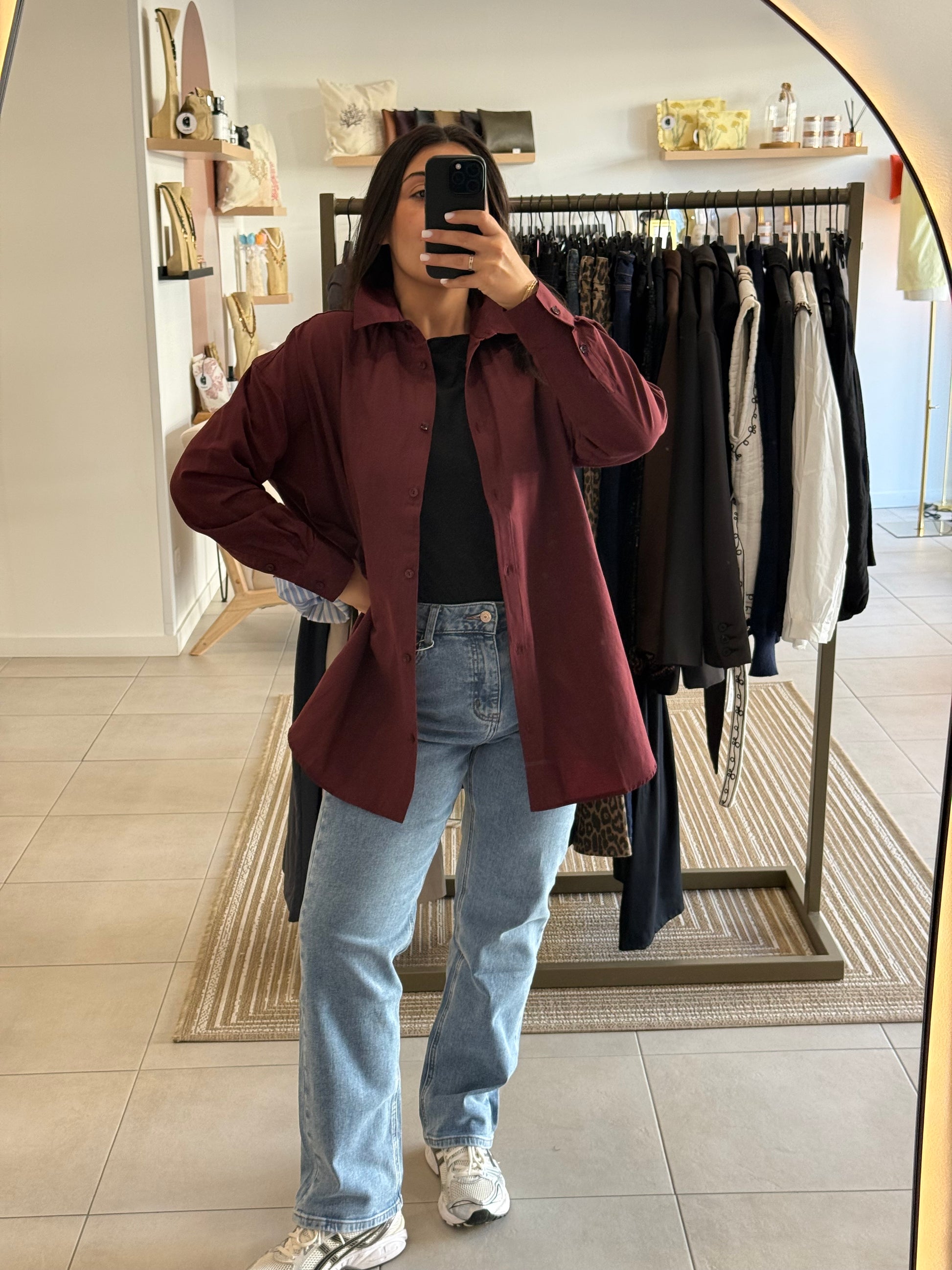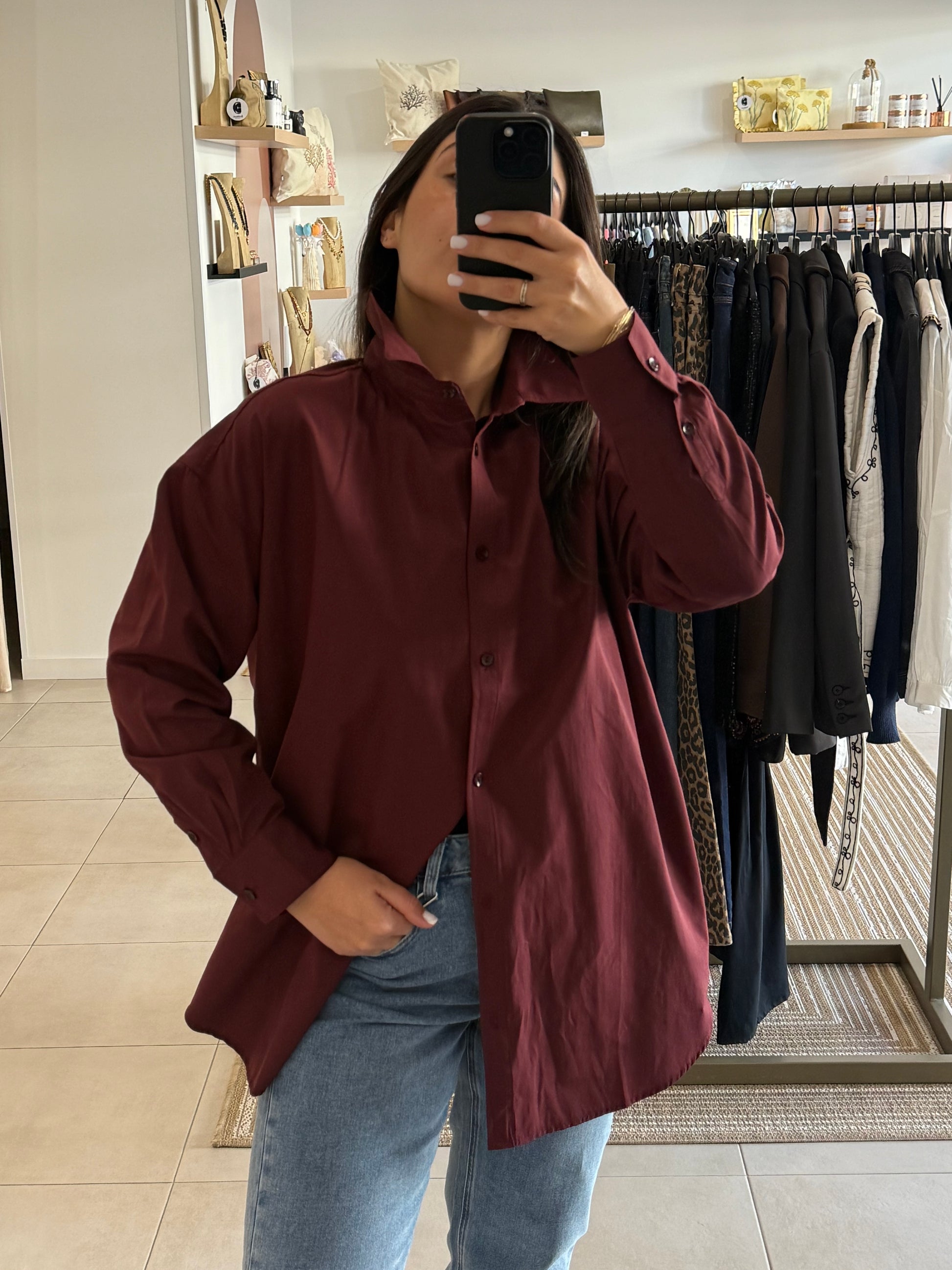 Chemise oversize en popeline, à la coupe ample et structurée, sublimée par des manches légèrement bouffantes pour une allure chic et moderne.