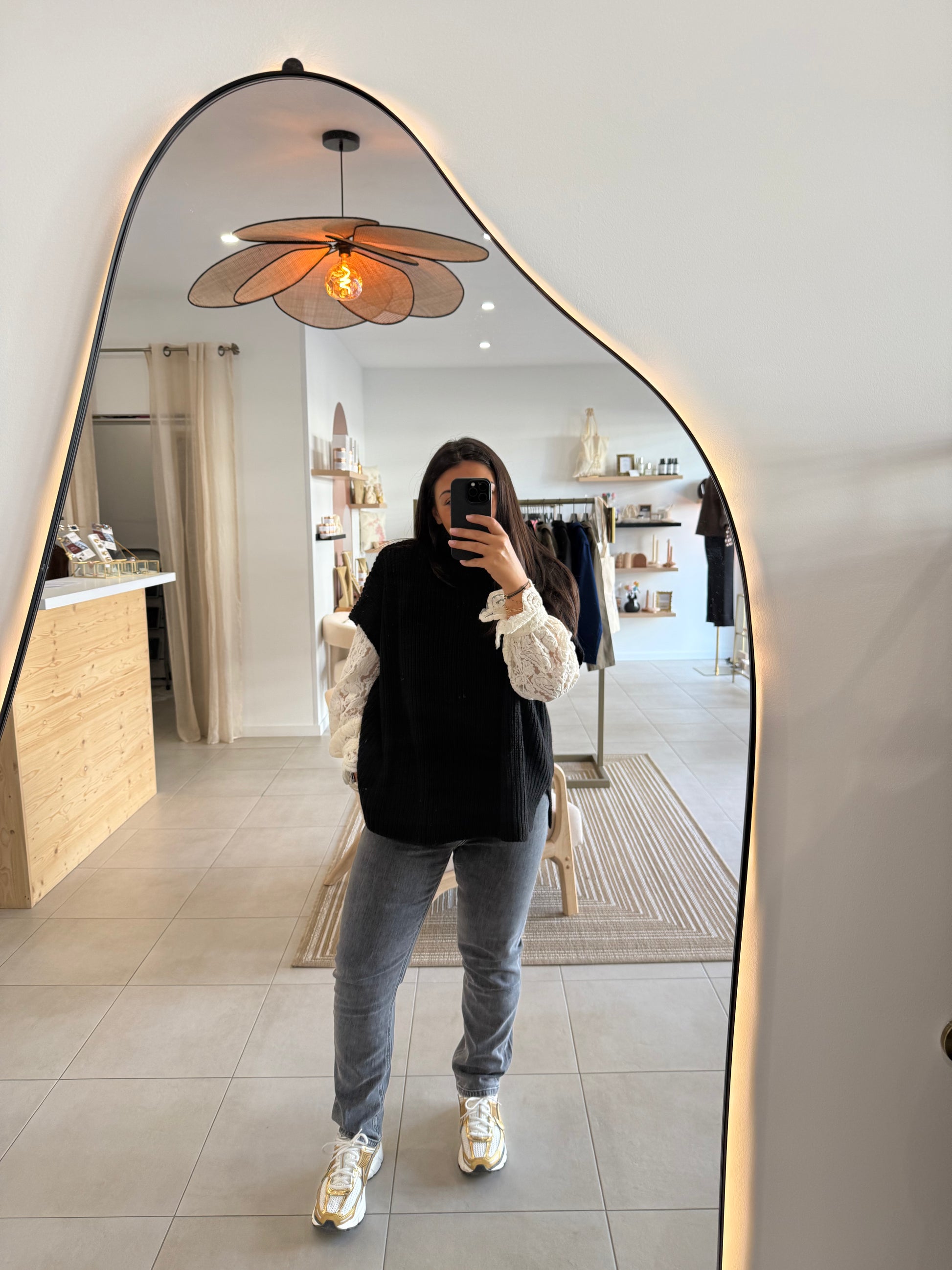 Jean momfit ajusté créé pour mettre en valeur votre silhouette tout en lui apportant un touche de vintage.