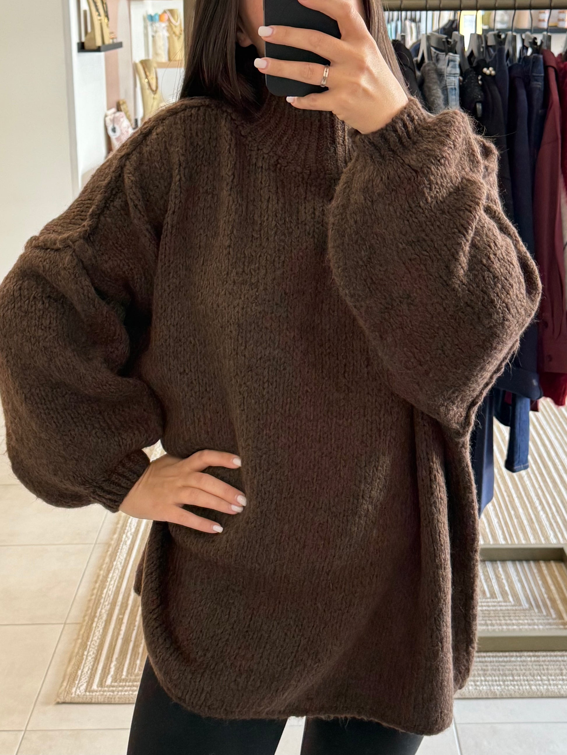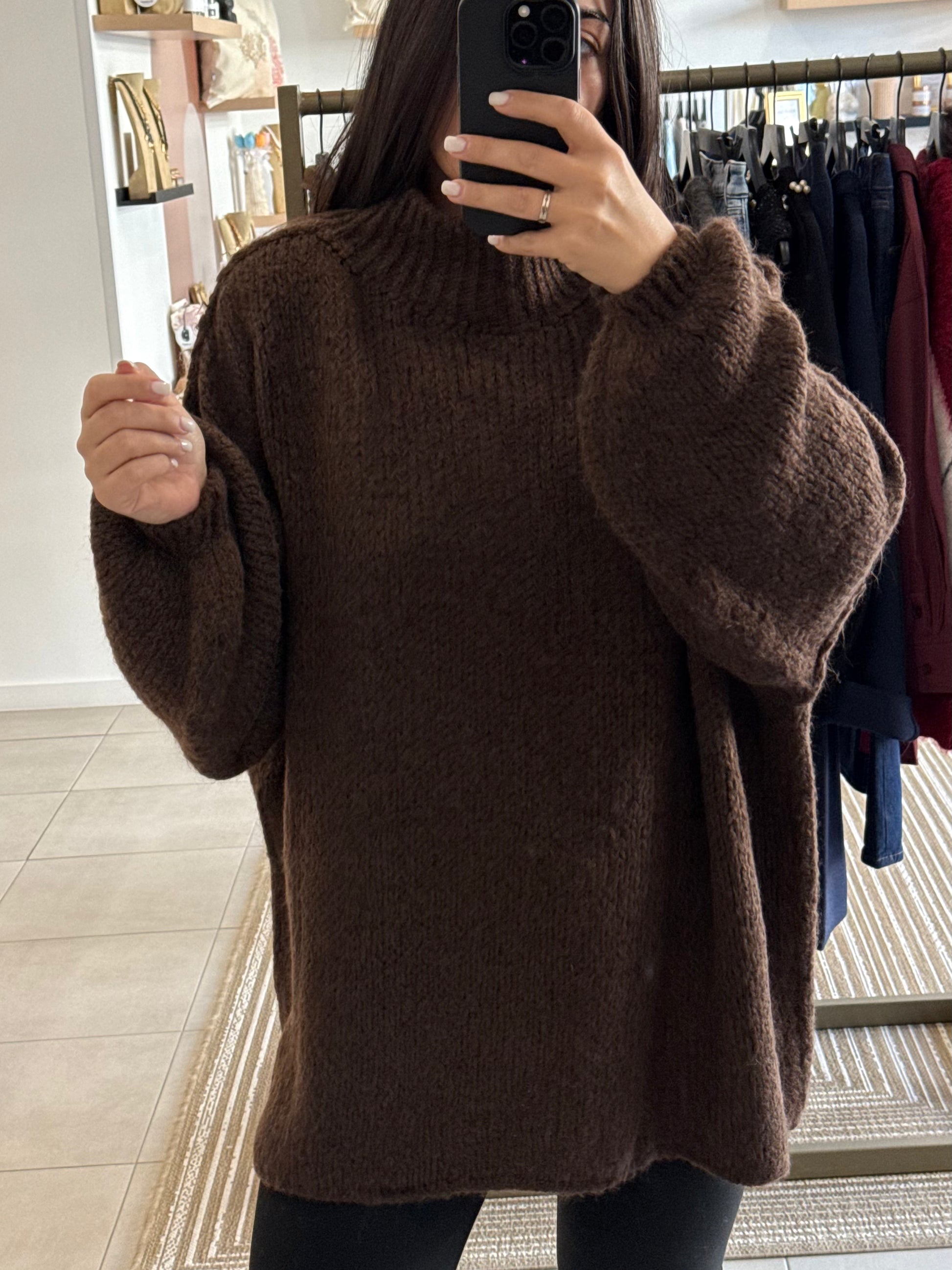 Pull en alpaga à la coupe oversize, ultra doux et chaleureux. Sa maille épaisse et moelleuse offre un tombé fluide et confortable, avec ses manches amples pour un look cosy et tendance.