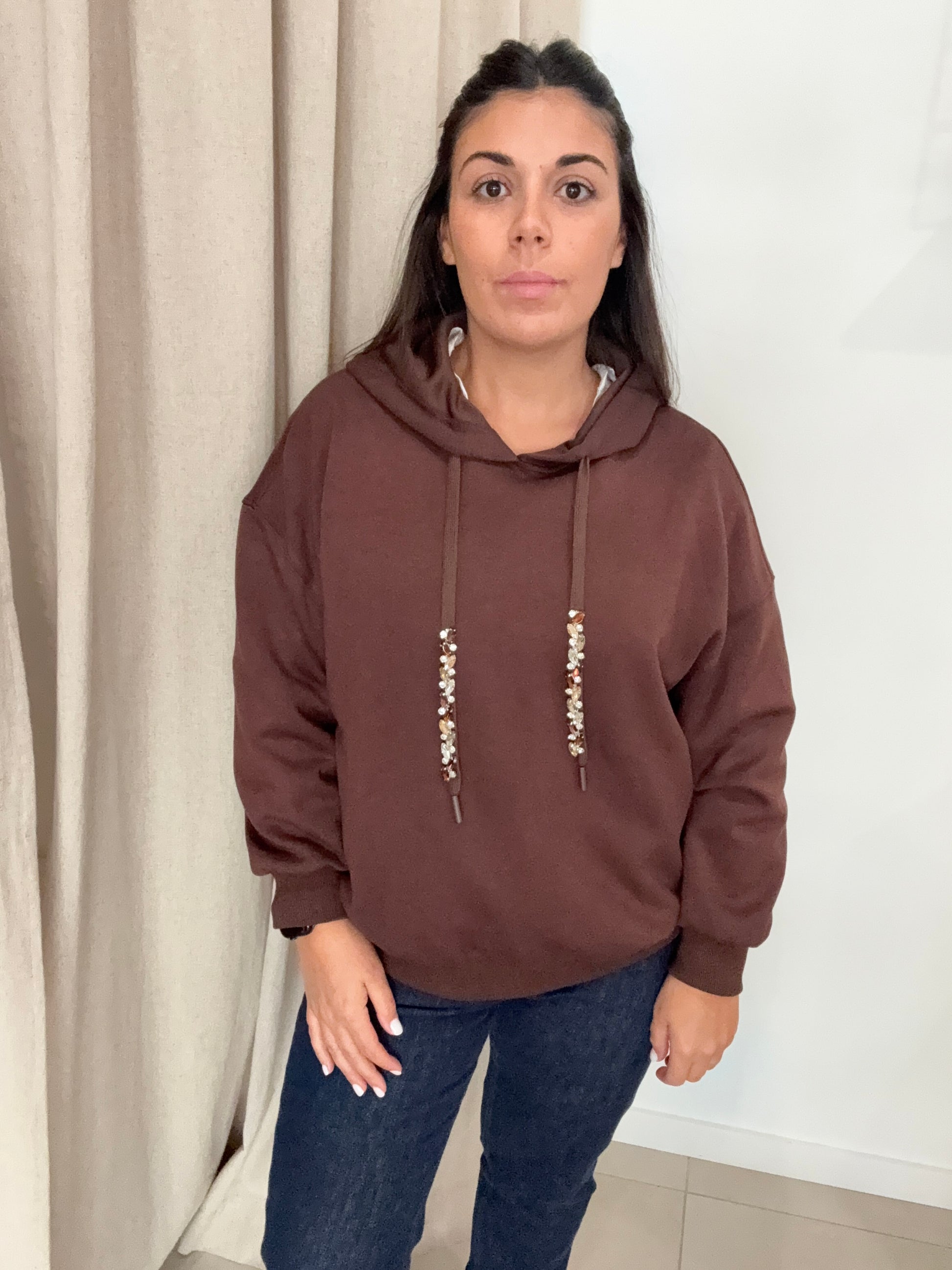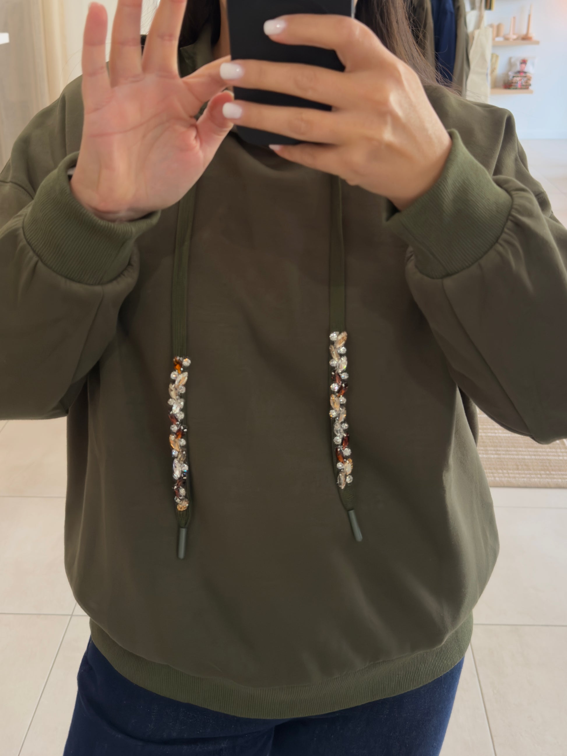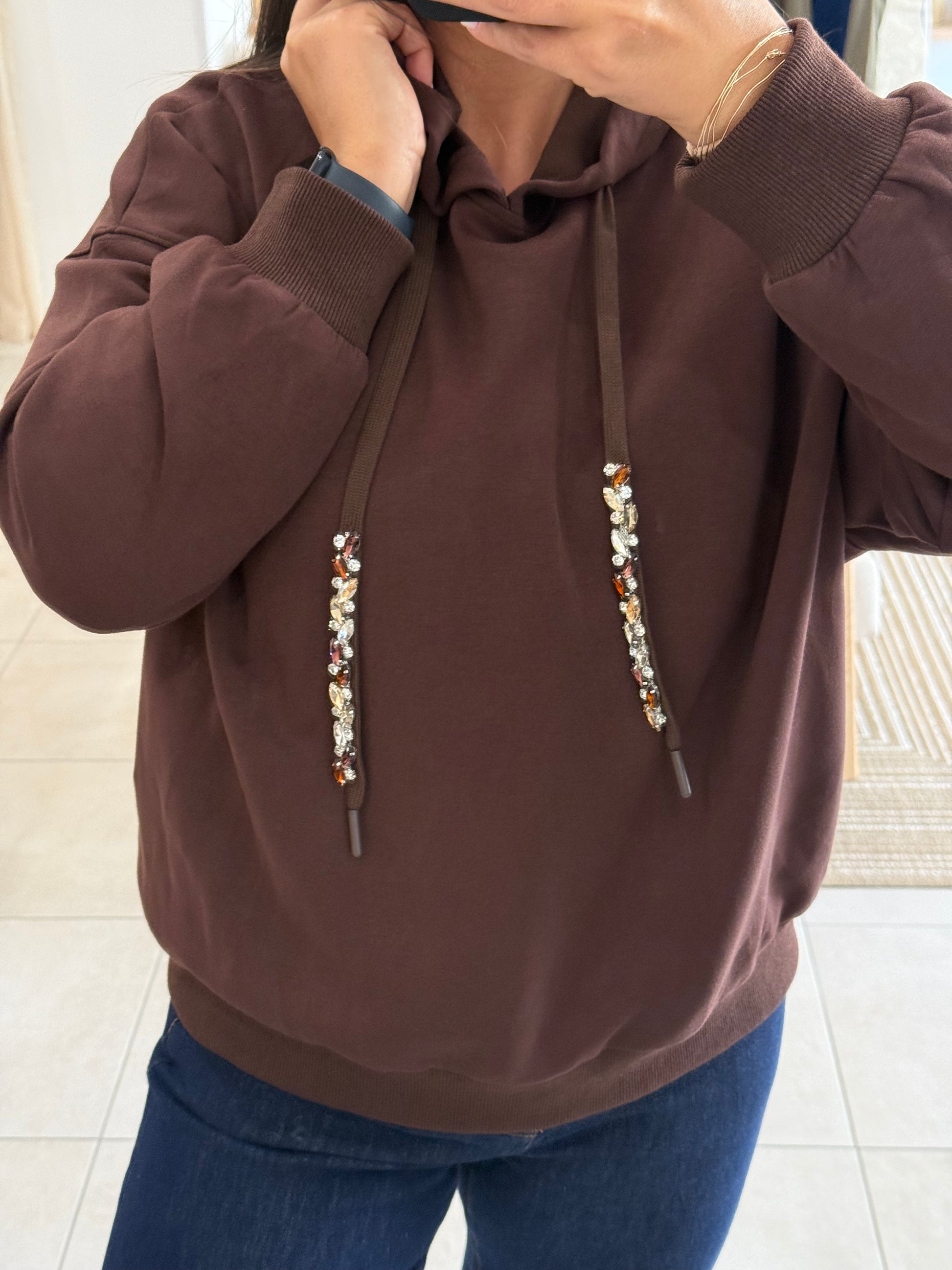 Détails; cordons réglables orné de strass.